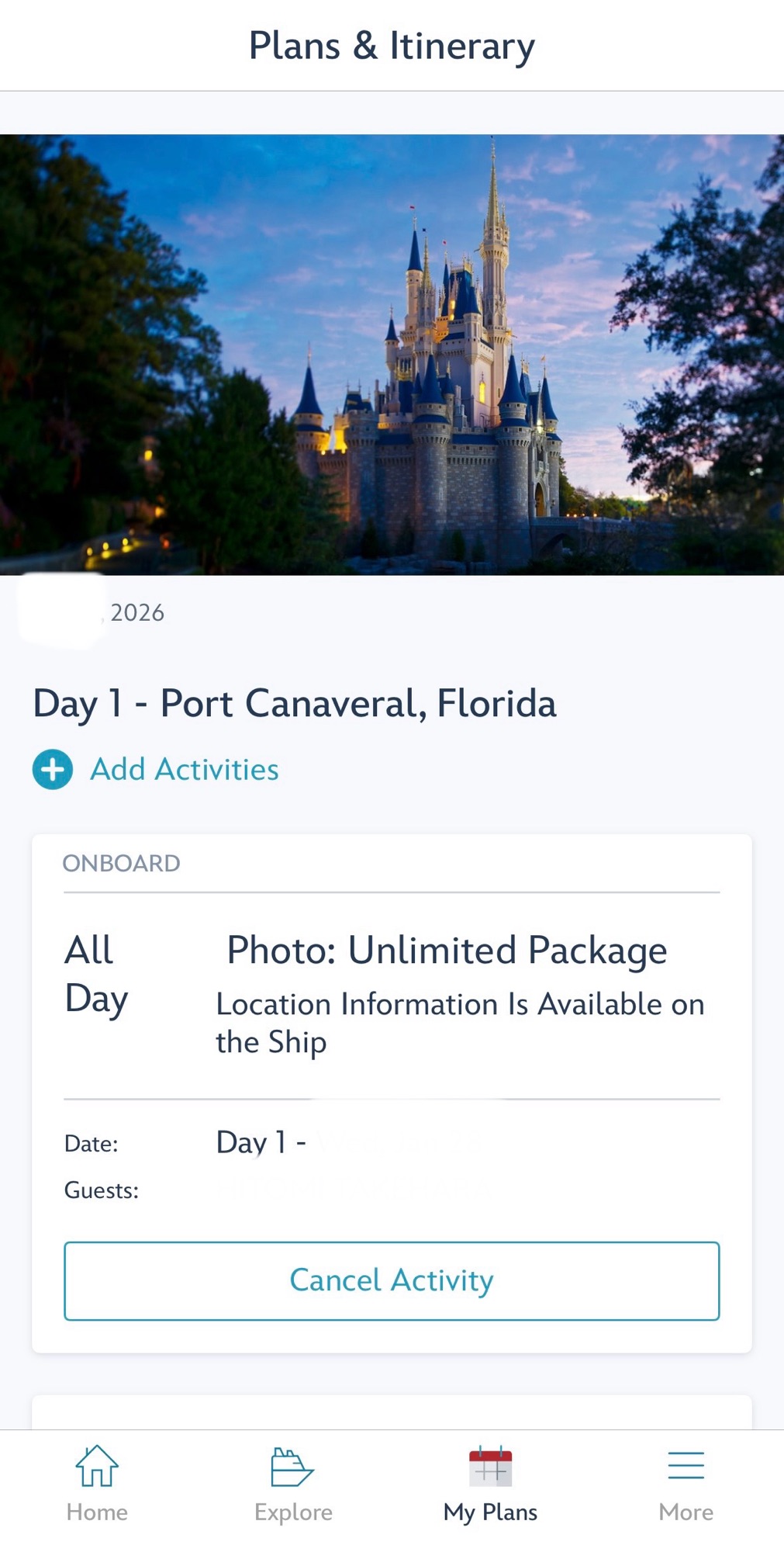 DCL乗船の75日前になると、初回メンバーもアクティビティ予約ができるようになります。