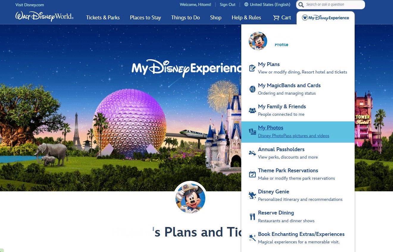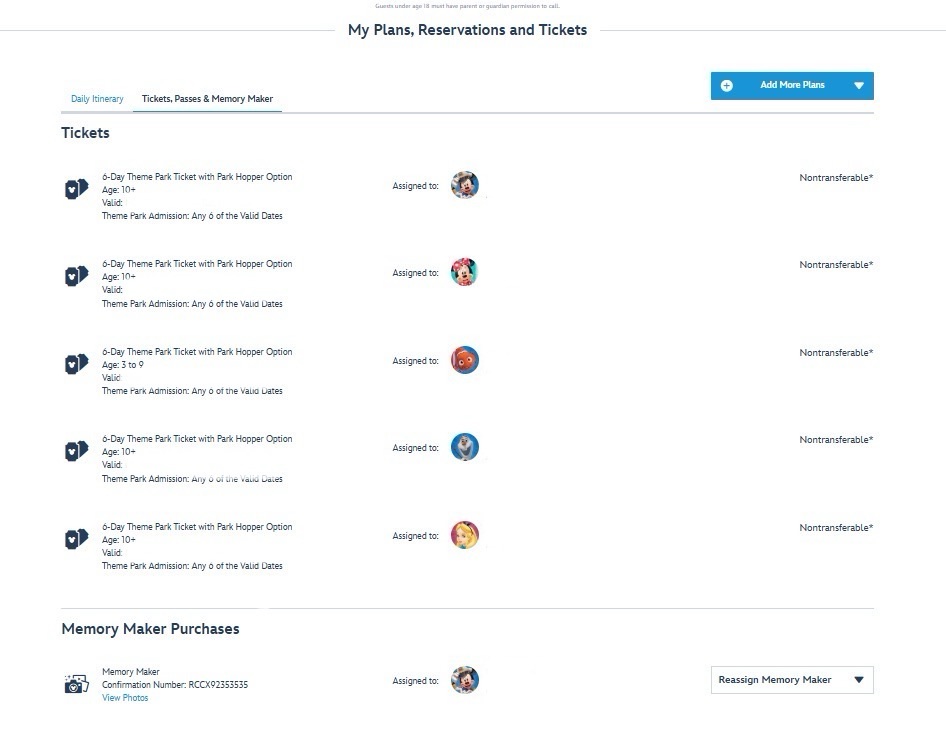 メモリーメーカーを無事に購入できたかどうかはMy Disney ExperienceのMy PlansでTickets, Pass & Memory makerのタブをクリックすると下側に表示されているので確認ができます。