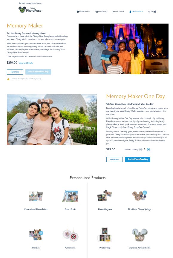 WDWでも同様に「メモリーメーカー」というフォトパス購入プランがあります。